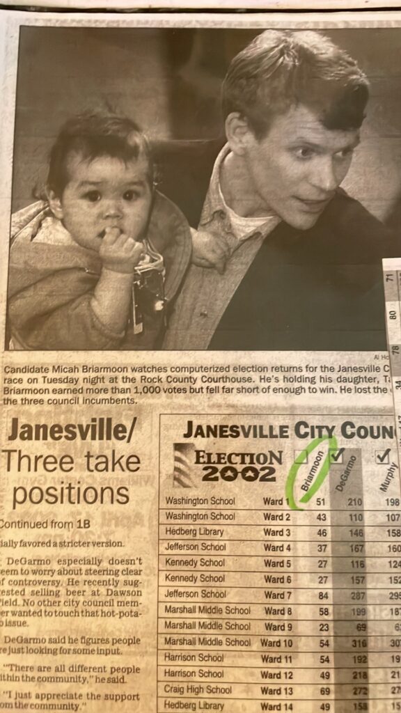 Committed to his community, Micah returned to Janesville, where he worked with the YWCA’s before and after school program while attending the University of Wisconsin-Whitewater. He ran for city council, founded the Guide Language Center, and taught middle school ESL. His work focused on communication, growth, and helping people expand their world.